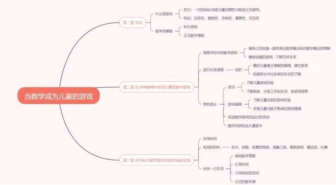倪雨青老师:在幼儿生活中数学无处不在,也有不可替代的价值。书中提出:要在多种情境下发现儿童的数学游戏。这让我回忆起之前我的一些教育教学实践。在之前的教育教学工作中,我们也是从幼儿的生活出发,根据情境挖掘数学游戏的。秋天落叶飘下来堆积了许多落叶,幼儿非常感兴趣都捡了起来,引发了分类的活动,在分类当中幼儿发现可以按照颜色分,也可以按种类分,结合在一起引发了二维分类,于是教师与幼儿一起设计了记录表,包括了颜色和种类,将收集到的树叶进行分类点数记录在表格中,在这一过程中提升了幼儿的数概念、分类能力、表格理解能力。因为树叶的数量比较多,所以有时候也是幼儿和同伴一起游戏,幼儿因此感受到了同伴合作的重要性。