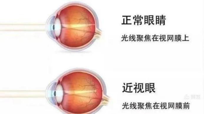 近视是在调节放松状态时,外部平行光线经眼球屈光系统后聚焦在视网膜之前,这种屈光状态称为近视。近视以视远不清、视近清为主要特征。发生在儿童中的屈光不正主要为近视。