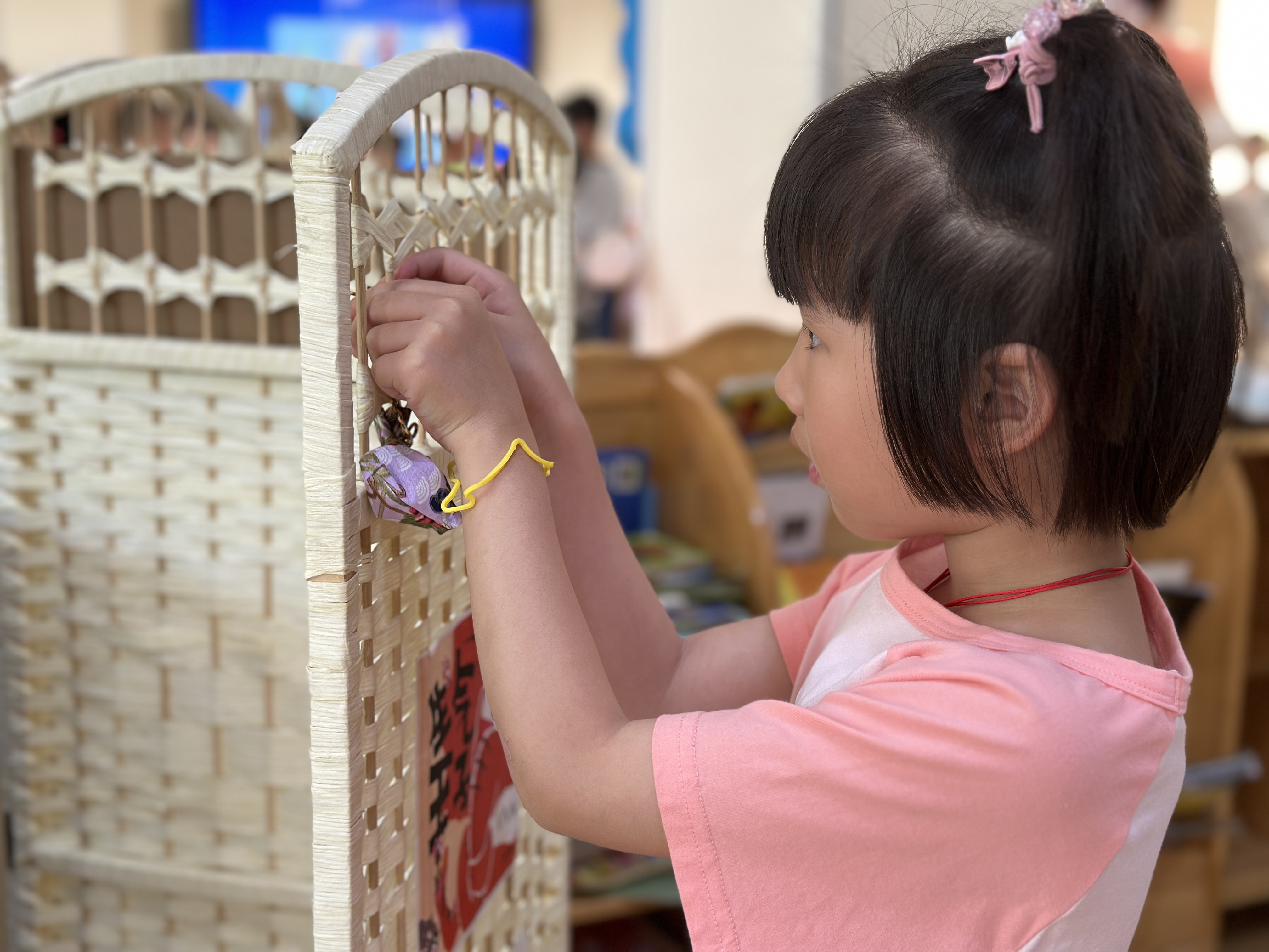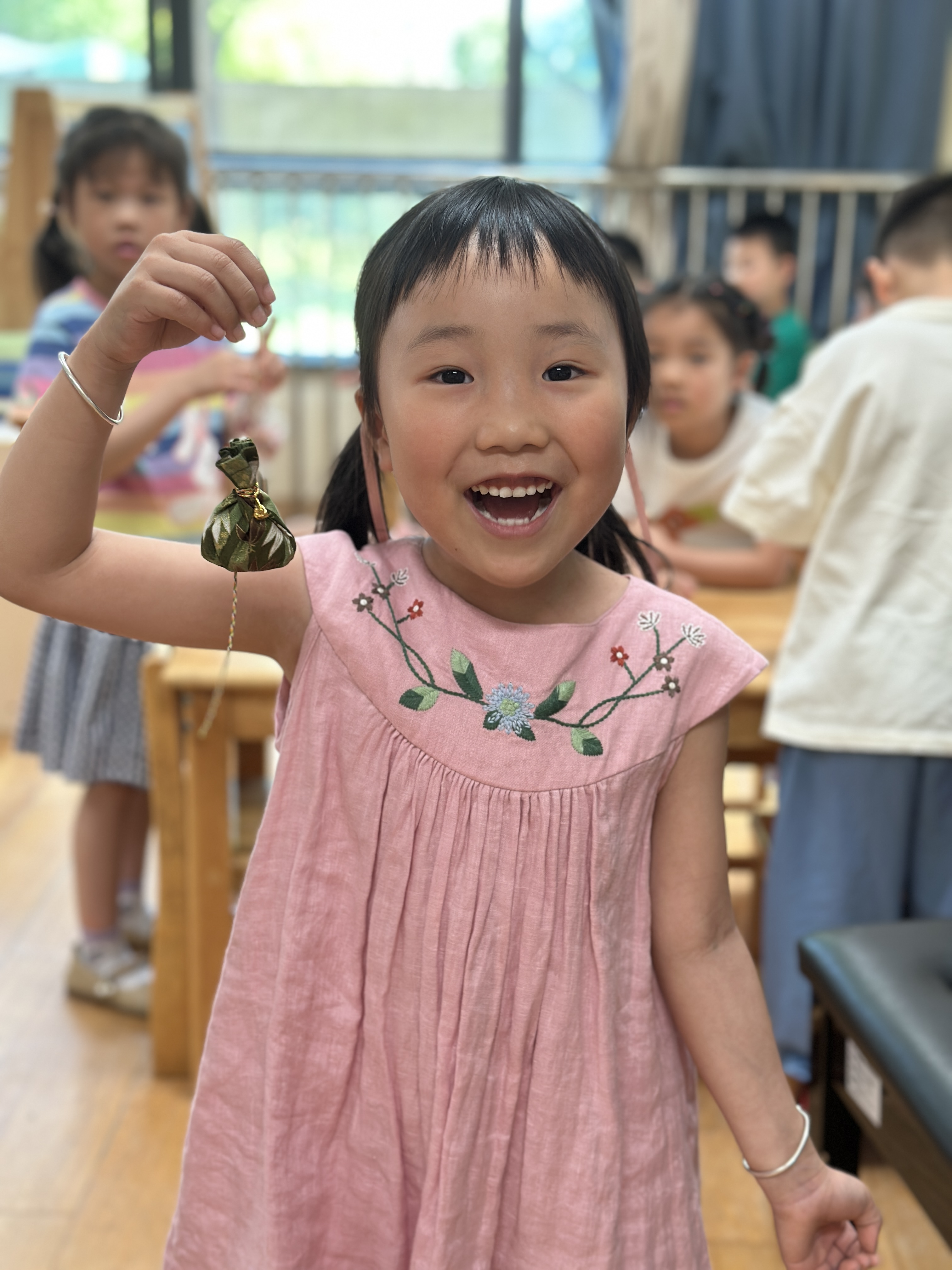 在小朋友的努力下,香包做好啦,这么多香包可以挂在哪里呢?